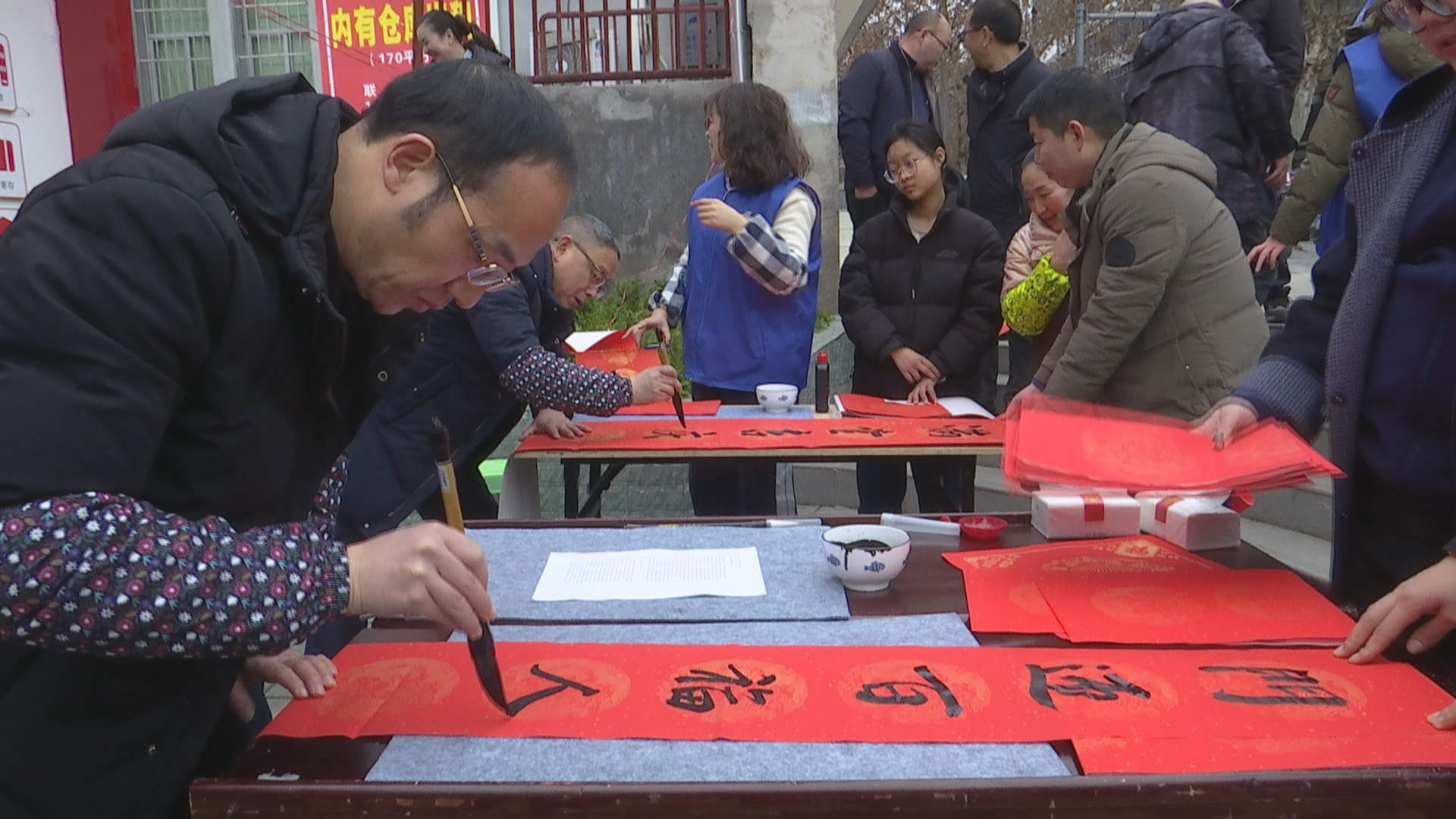党员志愿者进社区送春联 传递新春祝福