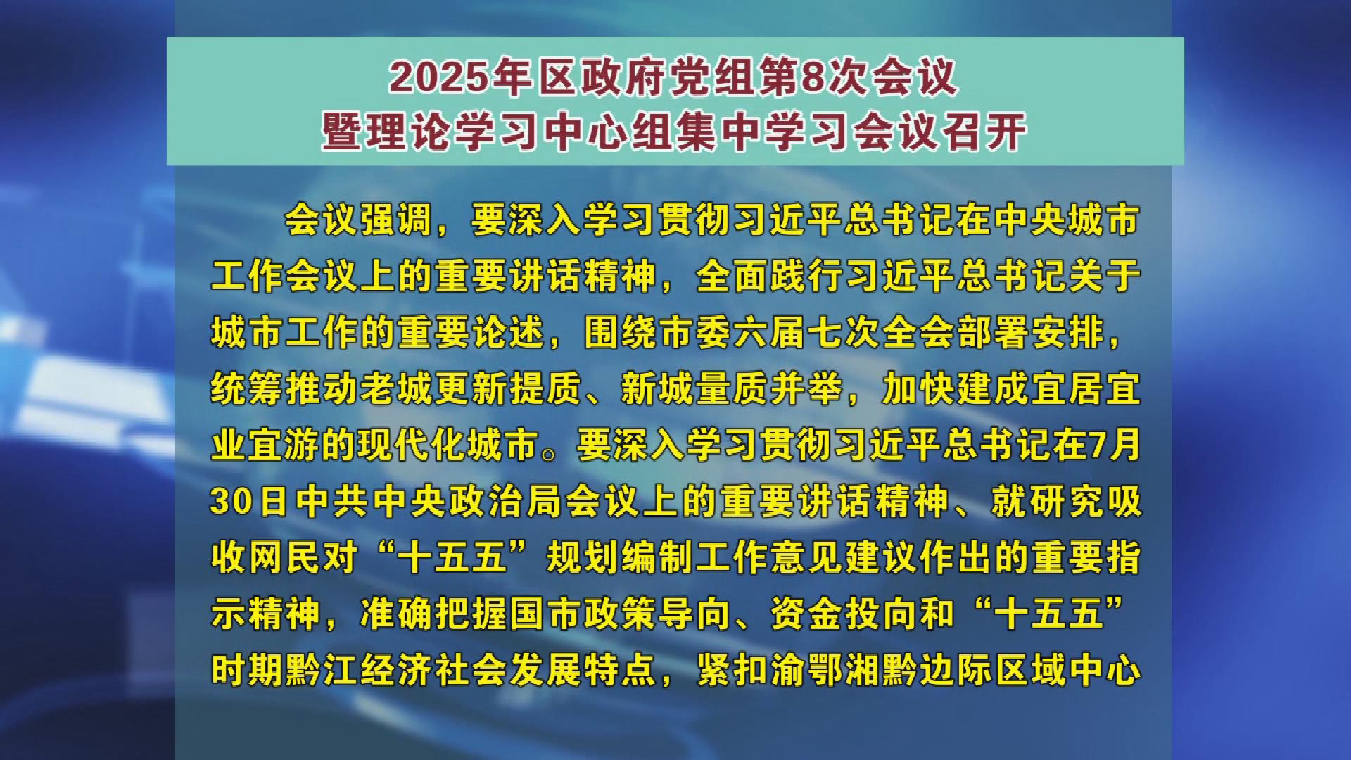 2025年区政府党组第8次会议暨理论学习中心组集中学习会议召开