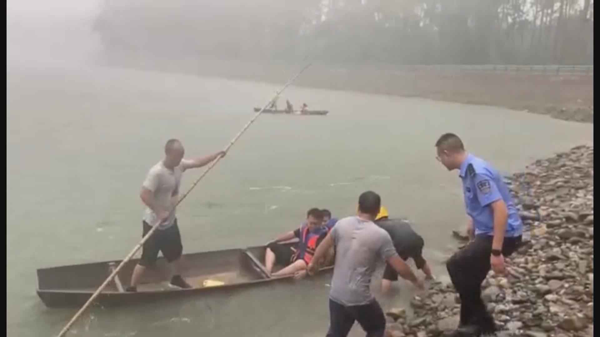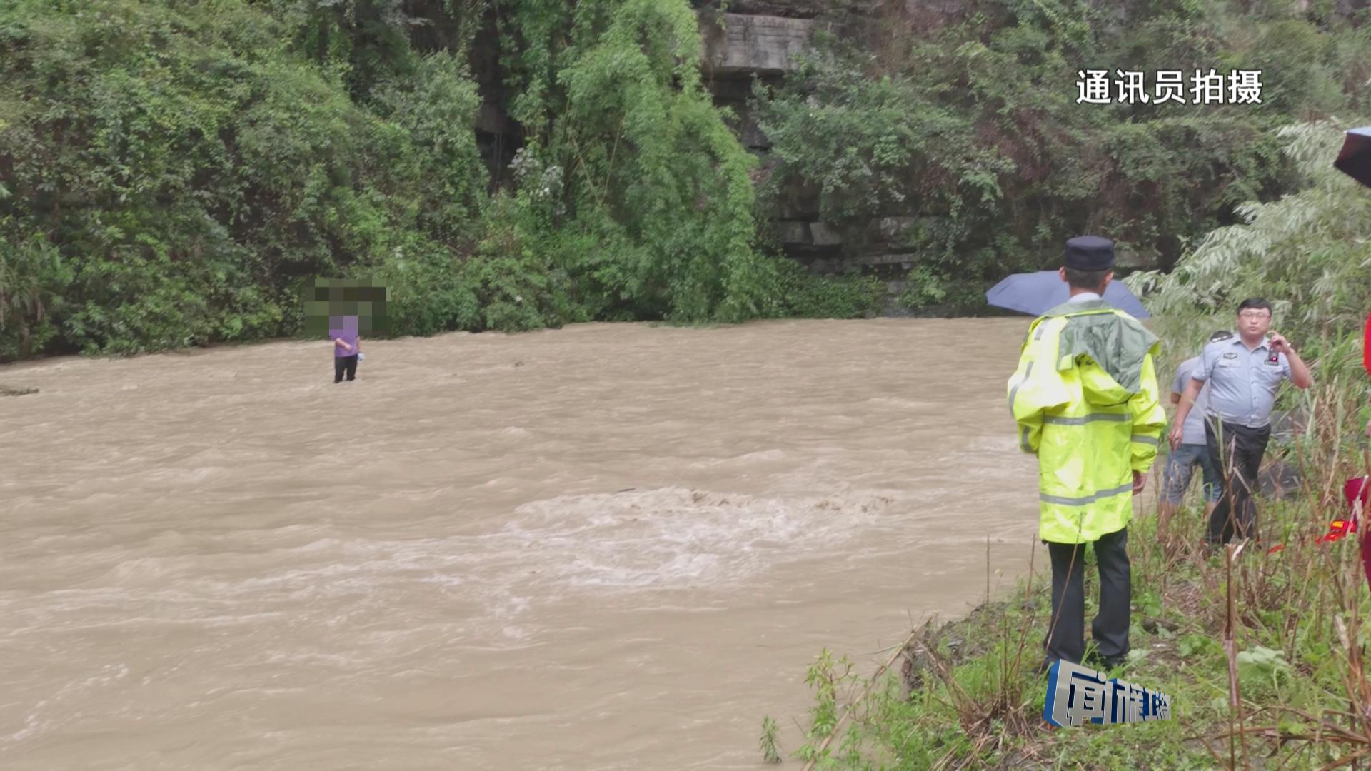 河水猛涨一男子被困 消防紧急救援
