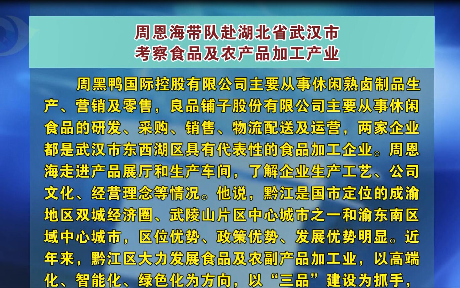 周恩海带队赴湖北省武汉市考察食品及农产品加工产业