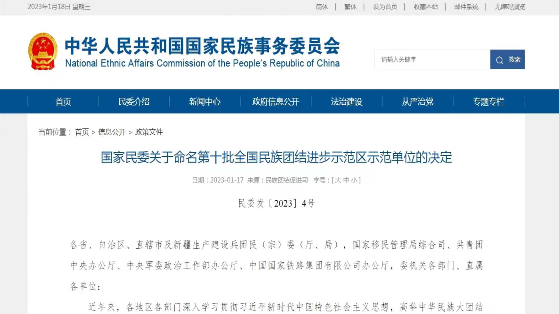 我区再次荣膺“全国民族团结进步示范区”