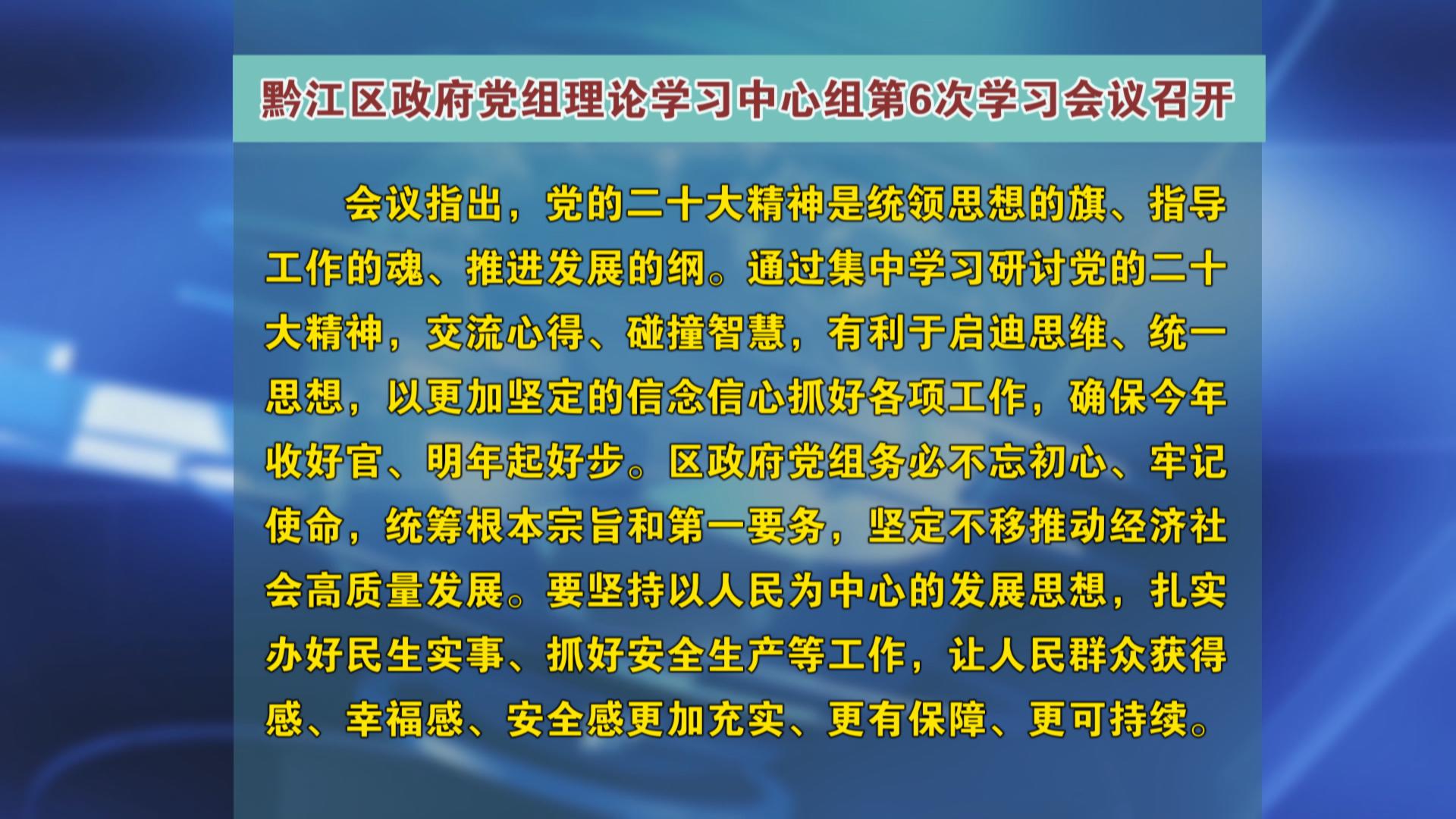 黔江区政府党组理论学习中心组第6次学习会议召开
