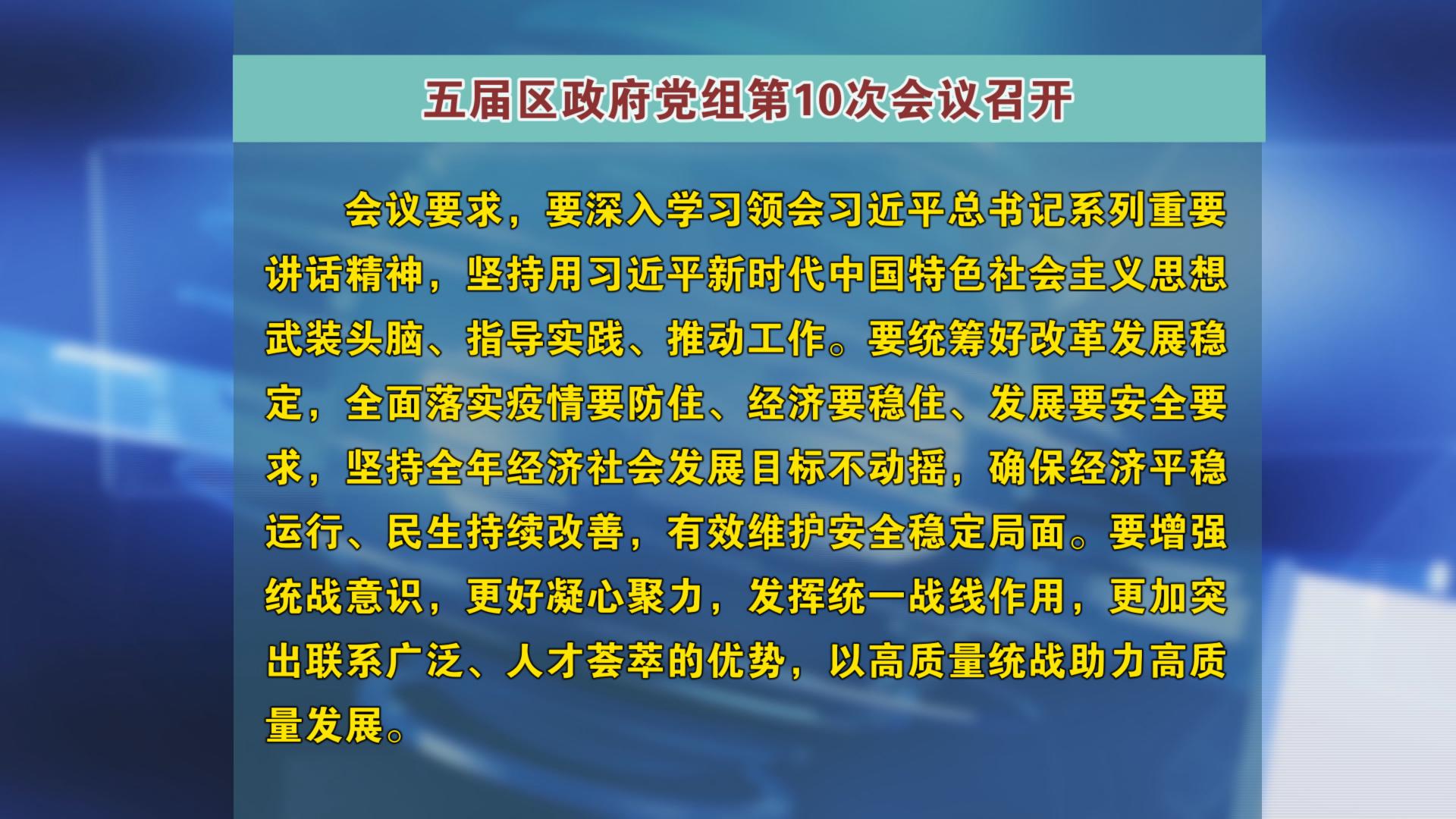 五届区政府党组第10次会议召开