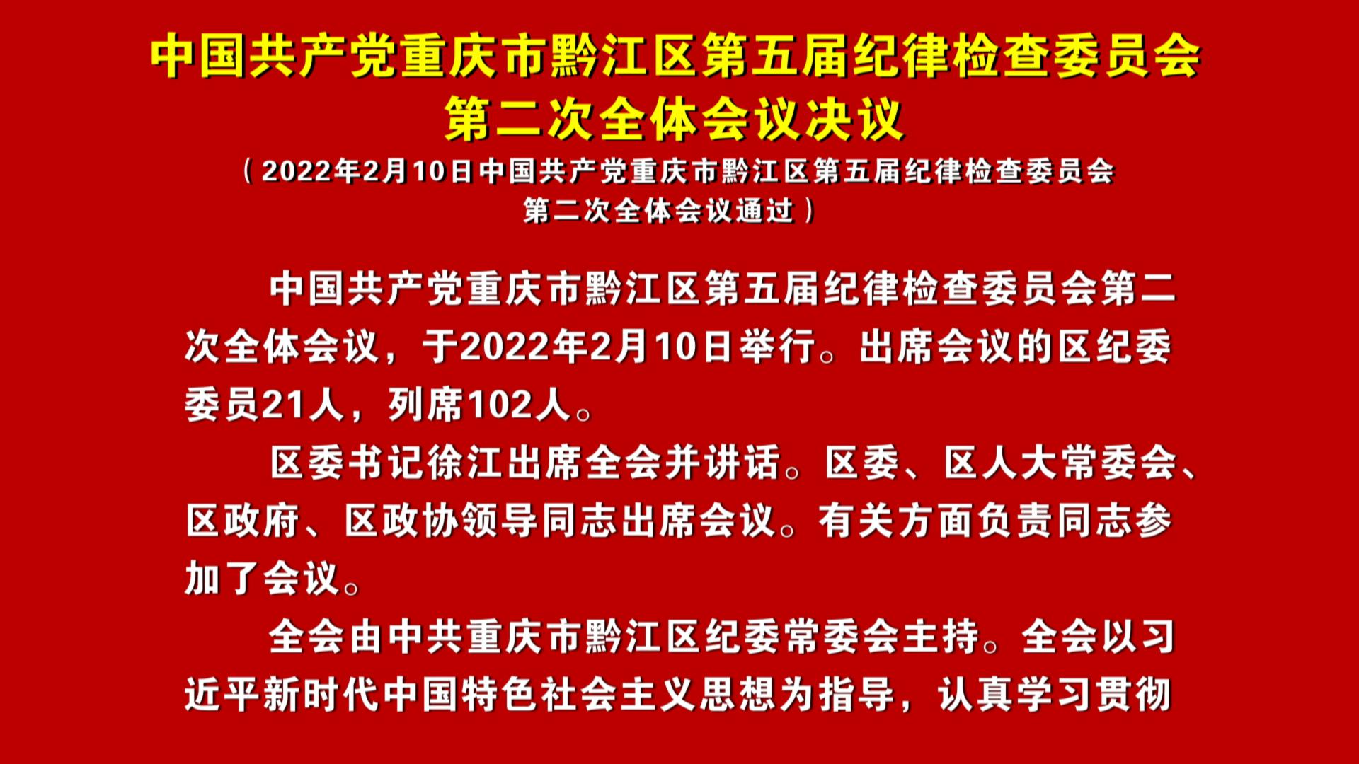 中国共产党重庆市黔江区第五届纪律检查委员会第二次全体会议决议
